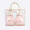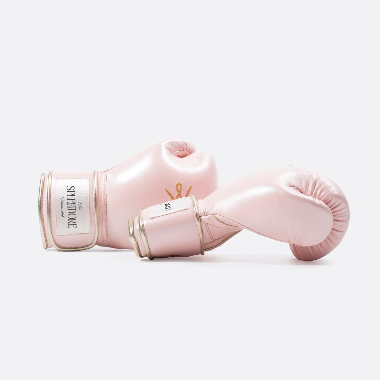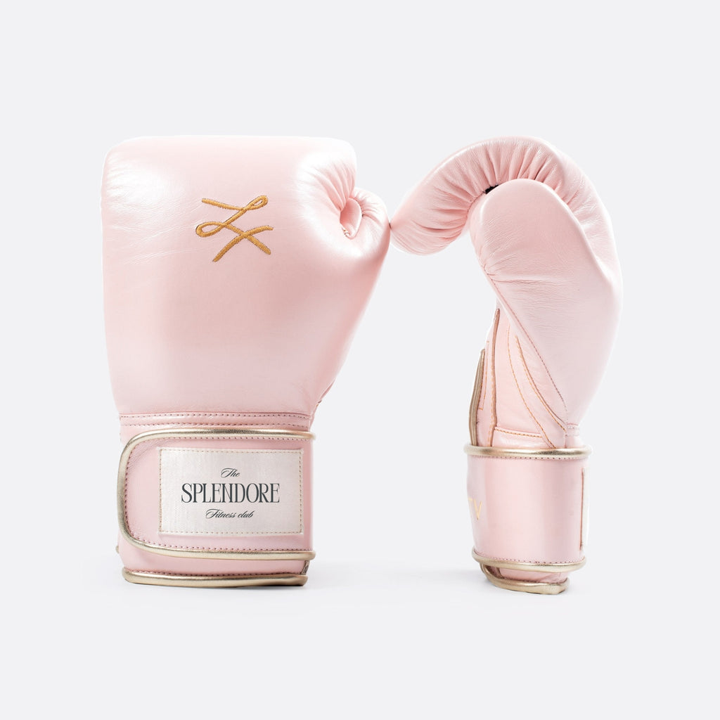 - Pop pink leather boxing gloves with golden details